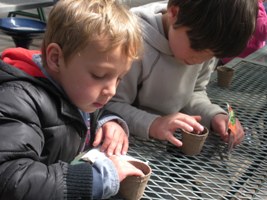 Once everyone had planted their seeds, the children were invited to play in the playhouse on site at Warner’s Nursery. Eagerly, the children ran to the playhouse, only to discover that it was locked! Ms. Misti, the store manager, cut the playhouse window screen and bravely climbed through the window to unlock the door! What dedication!