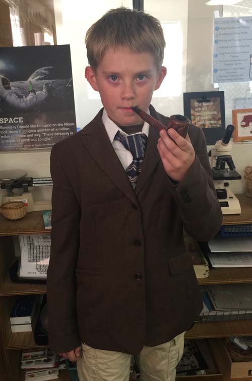 On the morning of Oct 31, the students begin by parading through the school dressed as their real-life character. Then, they read an (auto)biographical report written in the first person (“I was born…”) which gives clues to their audience of peers and parents about their identity. The students have a great time learning about legislators, peace-makers, authors, scientists, advocates, athletes and others who have made a significant impact on our world. Click through the gallery below and see if you can figure out just some of the many identities who “visited” our school last week for Mystery History Day.